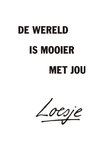 Loesje ken je vast van de posters. Loesje wilt je aan het lachen krijgen, of aan het denken zetten. Ze probeert de wereld op haar kop te zetten door af en toe haar gedachten op je los te laten. Ze wil kietelen, omdraaien en huppelen tegelijk, maar het liefst van al wil ze de wereld een beetje veranderen. Met een kaartje van Loesje ben jij ook een beetje Loesje. Je helpt haar om iemand aan het lachten te krijgen en zo de wereld een stuk mooier te maken. Witte liefdeskaart van Loesje met grappige spreuk 'De wereld is mooier met jou'.