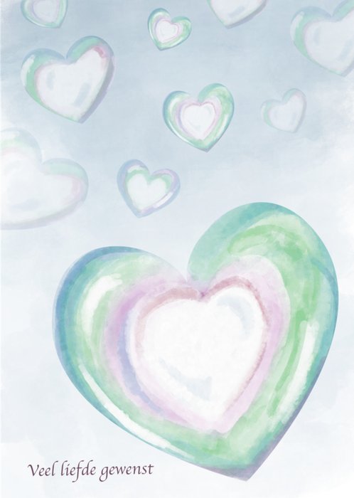 Lieve condoleancekaart met hartjes en de tekst: 'Veel liefde gewenst'. Laat iemand weten dat je aan hun denkt met deze condoleancekaart van Liefs Jansje.
