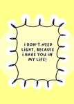 Leuke Kerstkaart met de tekst: I don't need light cause I have got you in my life.