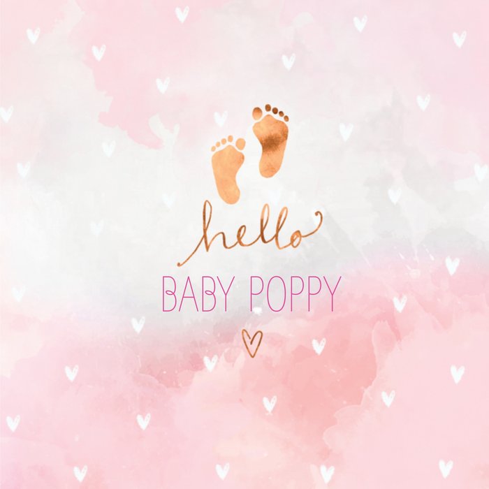 Leuk geboortekaartje voor een meisje met voetjes en de tekst: Hello baby poppy.