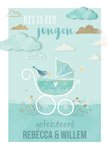 Leuke geboortekaart met illustratie en aanpasbare naam.