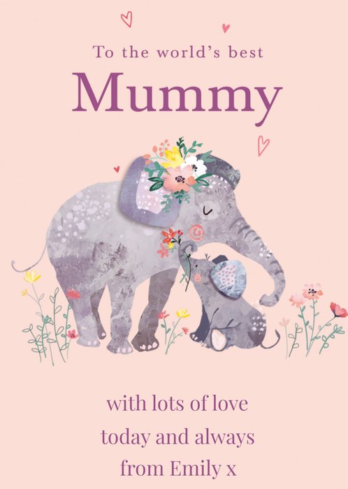 Wens je moeder een fijne Moederdag met deze leuke kaart van Ling Design. Op de kaart staat een olifant en de tekst: To the world'd best mummy. With lots of love today and always from [naam].