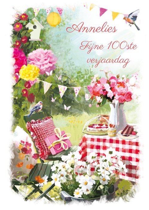 Vrolijke verjaardagskaart met aanpasbare naam.