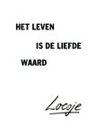 Minimalistische condoleancekaart met de tekst: 'Het leven is de liefde waard'. Laat iemand weten dat je aan haar denkt met deze typografische condoleancekaart van Loesje.