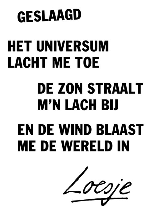 Leuke geslaagdkaart met tekst.