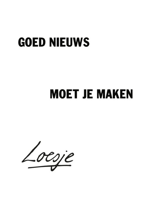 Loesje ken je vast van de posters. Loesje wilt je aan het lachen krijgen, of aan het denken zetten. Ze probeert de wereld op haar kop te zetten door af en toe haar gedachten op je los te laten. Ze wil kietelen, omdraaien en huppelen tegelijk, maar het liefst van al wil ze de wereld een beetje veranderen. Met een kaartje van Loesje ben jij ook een beetje Loesje. Je helpt haar om iemand aan het lachen te krijgen en zo de wereld een stuk mooier te maken.