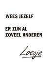 Loesje ken je vast van de posters. Loesje wilt je aan het lachen krijgen, of aan het denken zetten. Ze probeert de wereld op haar kop te zetten door af en toe haar gedachten op je los te laten. Ze wil kietelen, omdraaien en huppelen tegelijk, maar het liefst van al wil ze de wereld een beetje veranderen. Met een kaartje van Loesje ben jij ook een beetje Loesje. Je helpt haar om iemand aan het lachen te krijgen en zo de wereld een stuk mooier te maken.