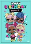 Kleurrijke verjaardagskaart met L.O.L dolls, aanpasbare naam en de tekst: 'Happy Birthday.' Verras iemand met deze leuke verjaardagskaart van L.O.L Suprise en Danilo.