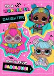 Kleurrijke verjaardagskaart met L.O.L dolls en aanpasbare tekst: 'To a wonderful _____ who is truly fabulous.' Verras iemand met deze leuke verjaardagskaart van L.O.L Suprise en Danilo.