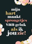 Stuur met Valentijn een leuke valentijnskaart met Greetz! Op deze kaart staat: mijn hart maakt sprongetjes van geluk als ik jou zie!