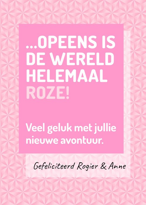 Lieve roze geboortekaart met aanpasbare naam.