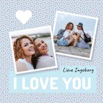 Liefdeskaart met de mogelijkheid om twee eigen foto's toe te voegen met de tekst; I love you. Lieve Ingeborg. De naam op de kaart is aanpasbaar.