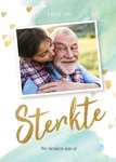 Stuur een beterschapskaart naar iemand die het verdient! Op deze lieve kaart van Luckz staat: Sterkte. We denken aan u! Ook kun je een foto toevoegen.