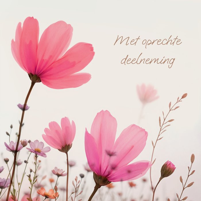 Stijlvolle condoleance kaart met een rood en roze bloemenveld. Wat zijn ze hip hè, de kaartjes van Luckz! Originele, persoonlijke kaarten voor ieder moment, die je eenvoudig kan aanpassen. Kenmerkend met een frisse, unieke stijl: trendy, stijlvol en stoer.
