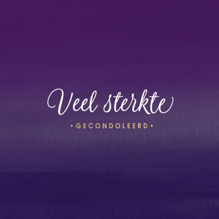 Een moeilijke tijd. Laat met dit paarse kaartje weten dat je aan iemand denkt. Op de kaart staat de tekst "Veel sterkte. Gecondoleerd"