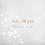 Een moeilijke tijd. Laat met dit condoleancekaartje weten dat je aan iemand denkt. De kaart is grijs van kleur met witte hartjes en de tekst "gecondoleerd. Heel veel sterkte"