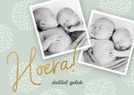 Wat een feest! Er is iemand geboren. Stuur deze leuke en lief geboortekaartje op van Luckz! Op de kaart staat: Hoera! Dubbel geluk.