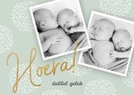 Wat een feest! Er is iemand geboren. Stuur deze leuke en lief geboortekaartje op van Luckz! Op de kaart staat: Hoera! Dubbel geluk.