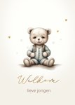 Schattige felicitatie kaart voor de geboorte van een baby. Met een lief beertje en hartje voor een jongen. Wat zijn ze hip hè, de kaartjes van Luckz! Originele, persoonlijke kaarten voor ieder moment, die je eenvoudig kan aanpassen. Kenmerkend met een frisse, unieke stijl: trendy, stijlvol en stoer.