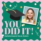Hoera, you did it! Stuur deze vrolijke kaart naar de geslaagde student. Met hippe roze tekst op een groene achtergrond. Wat zijn ze hip hè, de kaartjes van Luckz! Originele, persoonlijke kaarten voor ieder moment, die je eenvoudig kan aanpassen. Kenmerkend met een frisse, unieke stijl: trendy, stijlvol en stoer.
