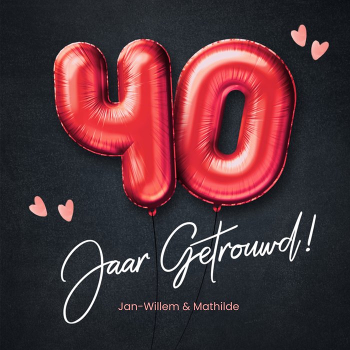 Wauw wat een mijlpaal! Jij kent iemand die een huwelijksjubileum te vieren heeft! Stuur als verassing deze lieve kaart van Luckz. Op de kaart staat: 40 jaar getrouwd! Je kunt een naam toevoegen.