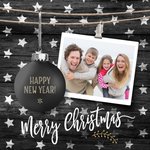 En kerstkaart van Luckz vol met zwarte en witte sterren. Ook kun je een foto in de vorm van een polaroid toevoegen.