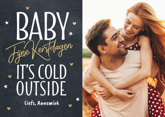 Wens je geliefde een warme kerst met deze grappige ‘Baby it’s cold outside’ kerstkaart. Plaats je eigen foto en maak je kaart nog persoonlijker.