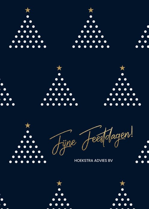 Wens uw zakelijke relaties fijne feestdagen met deze strakke en hippe kerstkaart. U past gemakkelijk uw bedrijsnaam aan. Rondom de tekst staan kerstboompjes.