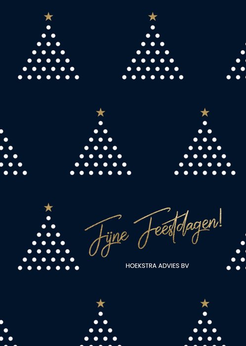 Wens uw zakelijke relaties fijne feestdagen met deze strakke en hippe kerstkaart. U past gemakkelijk uw bedrijsnaam aan. Rondom de tekst staan kerstboompjes.