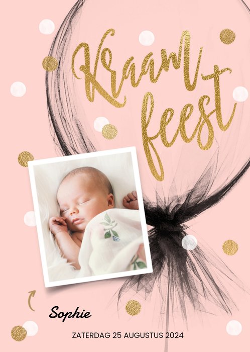 Leuke uitnodiging met foto en aanpasbare tekst.
