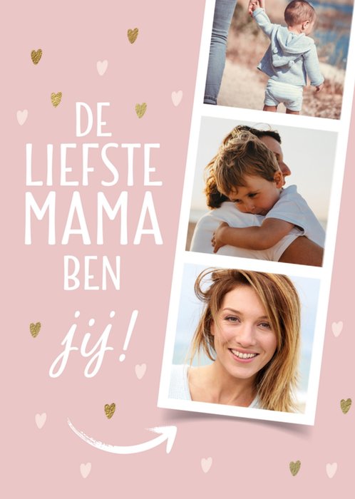 Verras jouw moeder op Moederdag met een leuke kaart met zelfs drie foto's. Hierbij staat de tekst: "De liefste mama ben jij!"