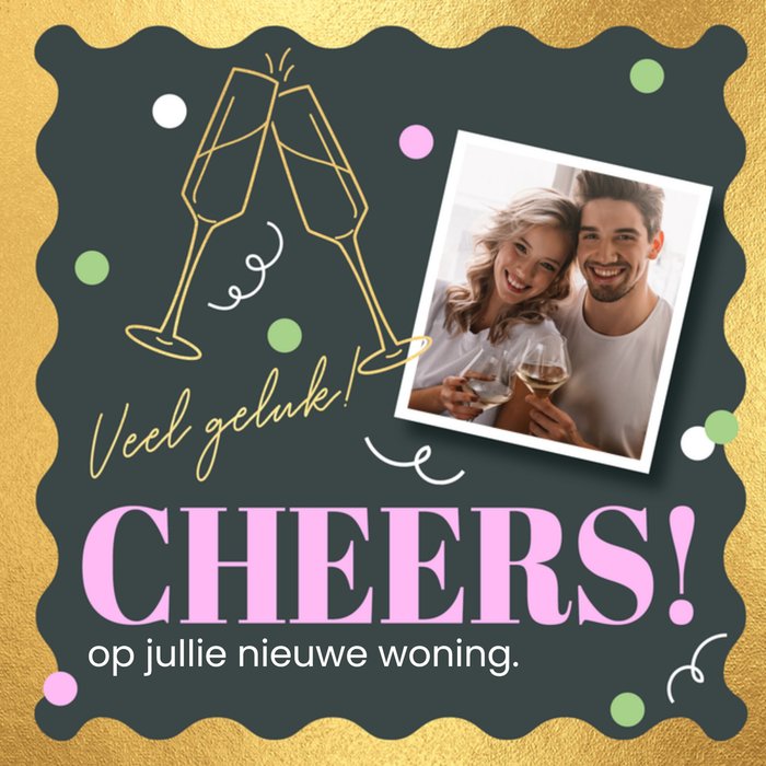 Verras iemand met deze vrolijke nieuwe woning kaart. De tekst en foto zijn aanpasbaar.