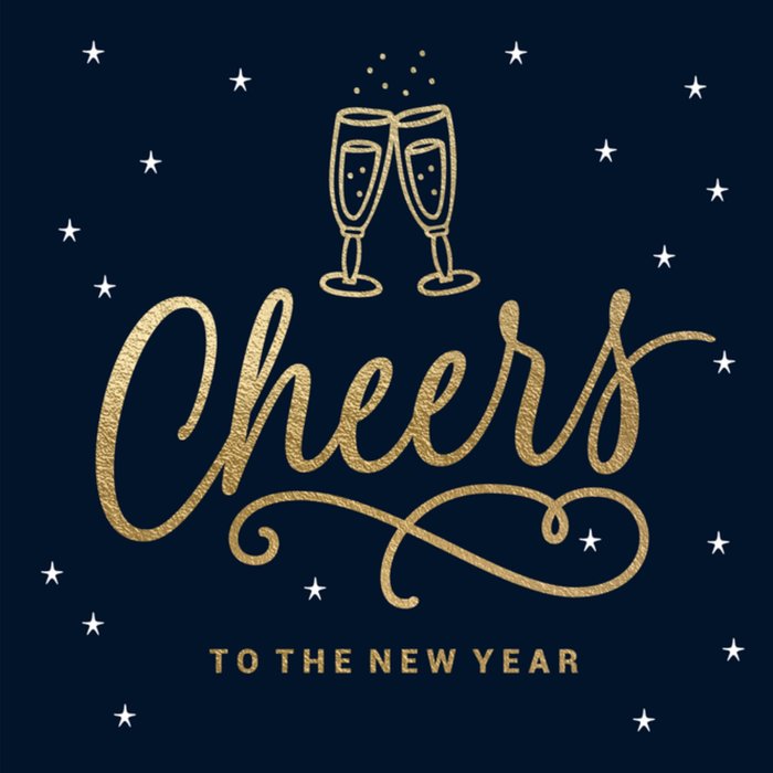 Proost met vrienden en familie op het nieuwe jaar met deze hippe nieuwjaarskaart met champagneglazen. Cheers to the New Year!