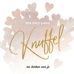 Laat weten dat je aan iemand denkt met deze lieve kaart van Luckz. Op de kaart staat: Een hele dikke knuffel we denken aan je.