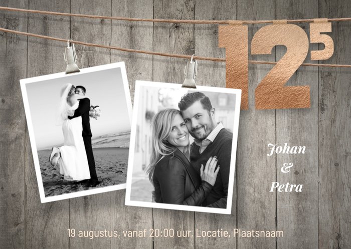 Stoer huwelijksjubileum uitnodiging. Voeg jullie leukste, meest romantische of grappigste foto's toe, pas de tekst aan en nodig iedereen uit voor een gezellig feestje.