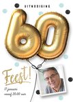 Nodig iedereen uit voor je 60ste verjaardagsfeest met deze leuke persoonlijke kaart van Luckz! Op de kaart staat het getal '60' in het goud op een witte achtergrond. De foto en de tekst op de kaart kan worden aangepast!