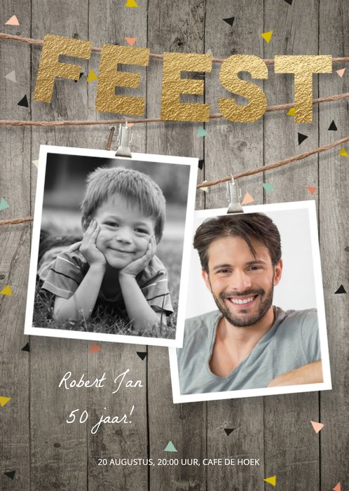 Nodig iedereen uit voor je verjaardagsfeest met deze stoere kaart van Luckz! Maak de kaart persoonlijk door twee foto's en je eigen tekst toe te voegen!