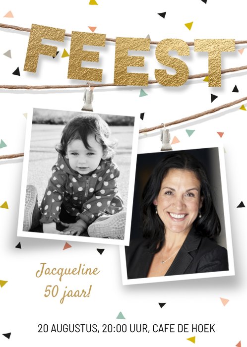Nodig iedereen uit voor je verjaardagsfeest met deze leuke kaart van Luckz! Maak de kaart persoonlijk door twee foto's en je eigen tekst toe te voegen!
