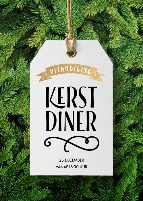 Kerst vier je samen. Nodig vrienden en familie daarom uit voor een gezellig kerstdiner. De tekst staat op het label is aanpasbaar en hangt voor groene dennentakjes.