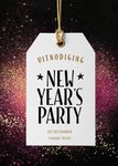 Een nieuwjaarsfeestje op de planning? Nodig iedereen uit voor een knallend uiteinde met deze hippe uitnodiging. Op het label pas je de tekst gemakkelijk aan. De achtergrodn is zwart met roze en heeft gouden details.