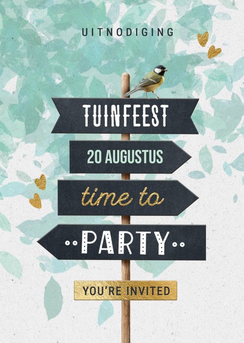 Kijk eens wat een hippe uitnodiging voor je tuinfeest. De tekst op de kaart is helemaal aan te passen.