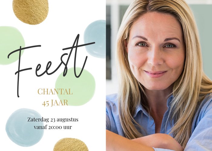 Leuke uitnodiging met foto en aanpasbare tekst.