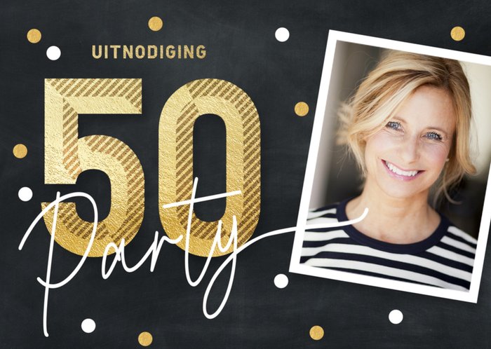 Leuke uitnodiging met foto en aanpasbare tekst.