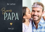 Stuur je bonus papa deze leuke vaderdagkaart van Luckz! Op de kaart staat: De liefste bonus papa ben jij! Ook kun je een foto toevoegen.