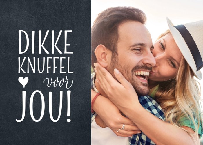 Valentijnskaartje van Luckz waar je een foto aan kunt toevoegen. Naast de foto zie je de tekst: dikke knuffel voor jou!