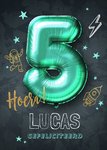 Hiep Hiep Hoera! Jij kent iemand die jarig is. Stuur daarom deze feestelijke verjaardagskaart van Luckz. Op de verjaardagskaart staat: 5 Hoera! gefeliciteerd.