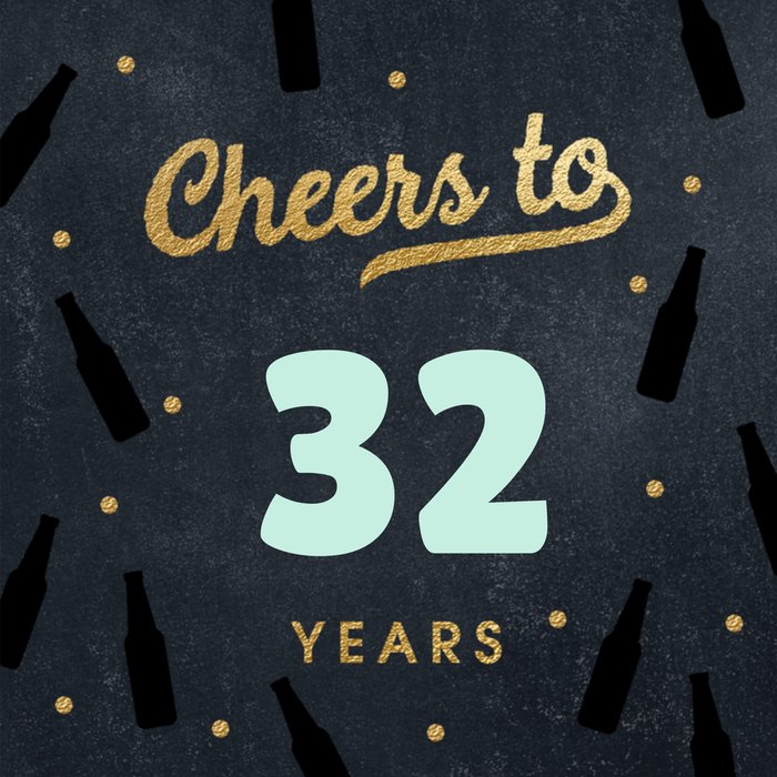 Iemand jarig? Feliciteer hem of haar met deze leuke kaart. Op de achtergrond zie je bierflesjes en gouden stippen. Het getal op de kaart kun je aanpassen. Op de kaart staat de tekst: "Cheers to .. years."