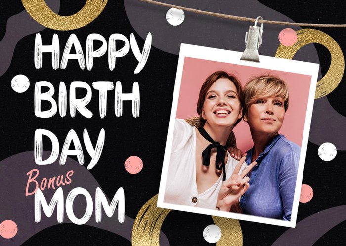 Hiep Hiep Hoera! Jij kent iemand die jarig is. Stuur daarom deze feestelijke verjaardagskaart van Luckz. Op de verjaardagskaart staat: Happy birthday bonus mom. Je kunt een foto toevoegen.