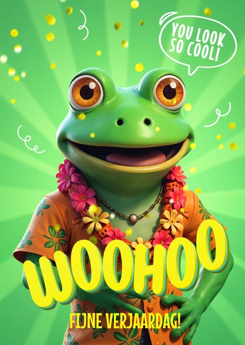 Grappige verjaardagskaart voor een man. Met een hippe kikker in Hawaii shirt op een groene achtergrond. Wat zijn ze hip hè, de kaartjes van Luckz! Originele, persoonlijke kaarten voor ieder moment, die je eenvoudig kan aanpassen. Kenmerkend met een frisse, unieke stijl: trendy, stijlvol en stoer.