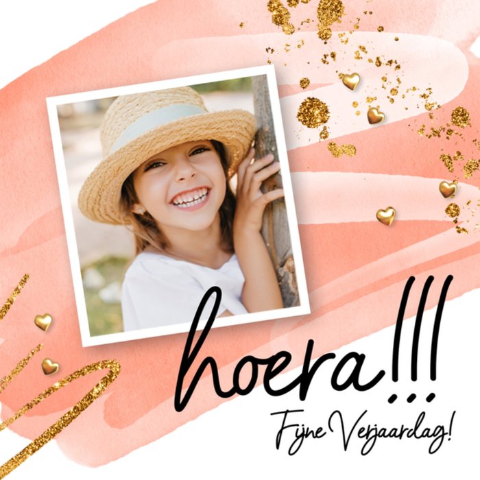 Leuke verjaardagskaart met foto en de tekst: Hoera!!! Fijne verjaardag!